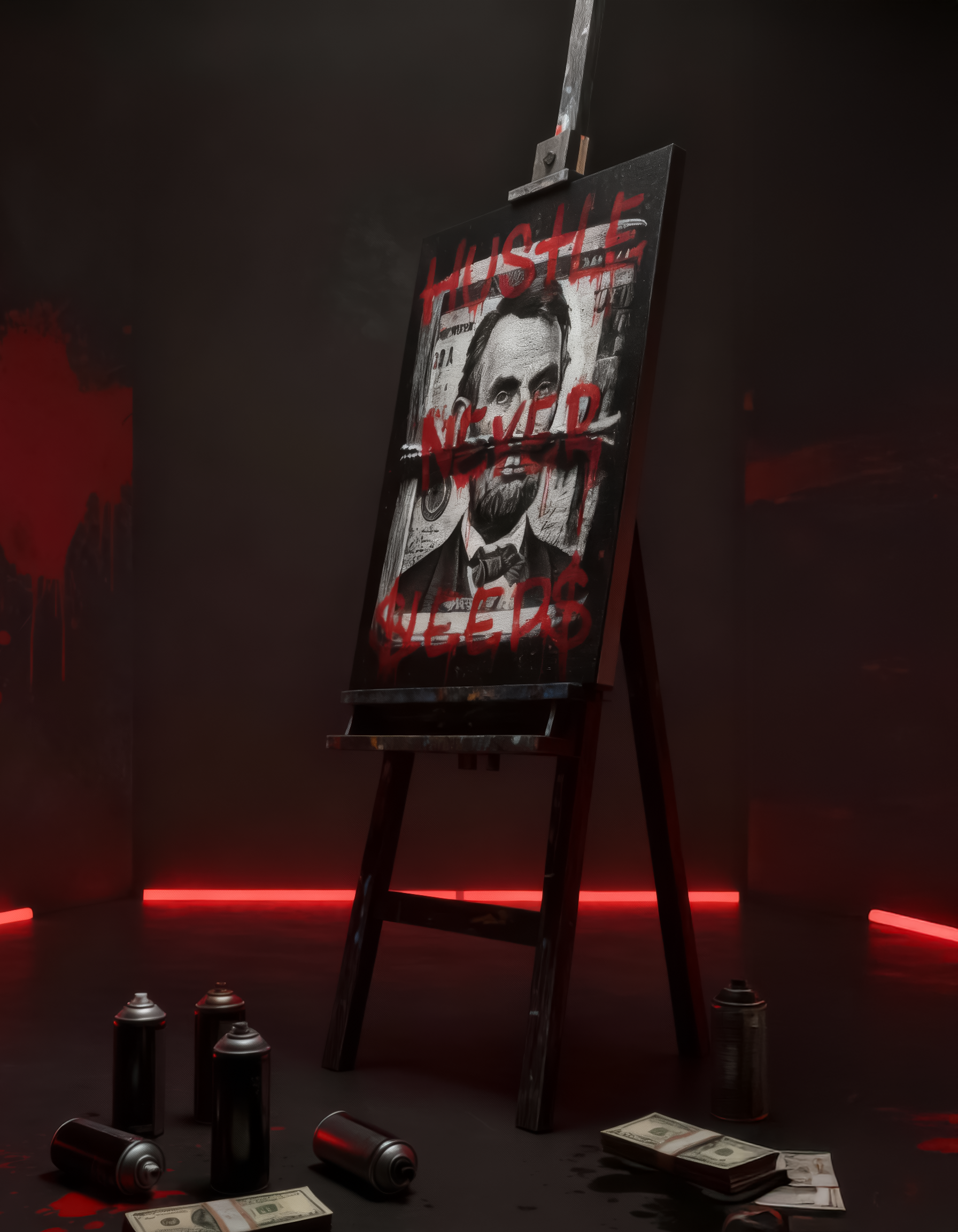 Aggiungi ai tuo spazi l’energia di chi non molla mai con HUSTLE NEVER SLEEPS. Il volto sulla banconota diventa il simbolo di chi si è fatto da solo, mentre la scritta in stile graffiti urla un messaggio chiaro: niente scuse, solo lavoro, focus e ambizione. Un pezzo che ti guarda dritto in faccia e ti ricorda ogni giorno perché hai iniziato.