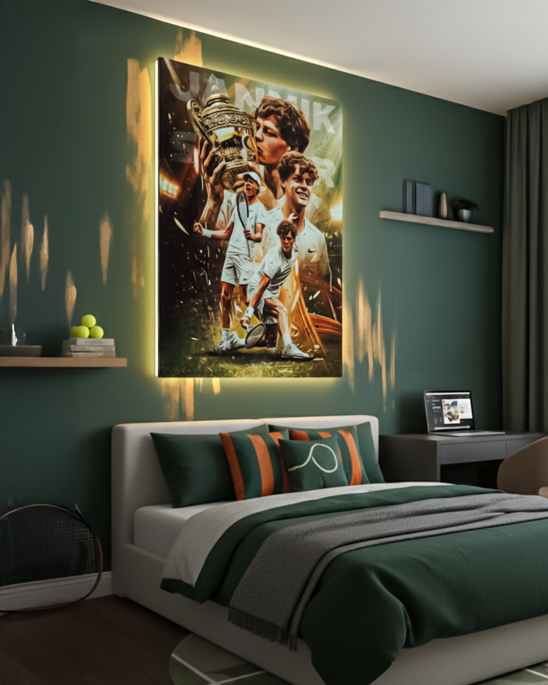 Disponibile in 5 dimensioni, SINNER CHAMP non è solo una stampa: è un pezzo d’arte pensato e realizzato in Italia, perfetto per chi ama il tennis, i campioni che partono dal basso e vuole dare ai propri spazi un tocco motivazionale, orgogliosamente italiano e carico di ambizione.
